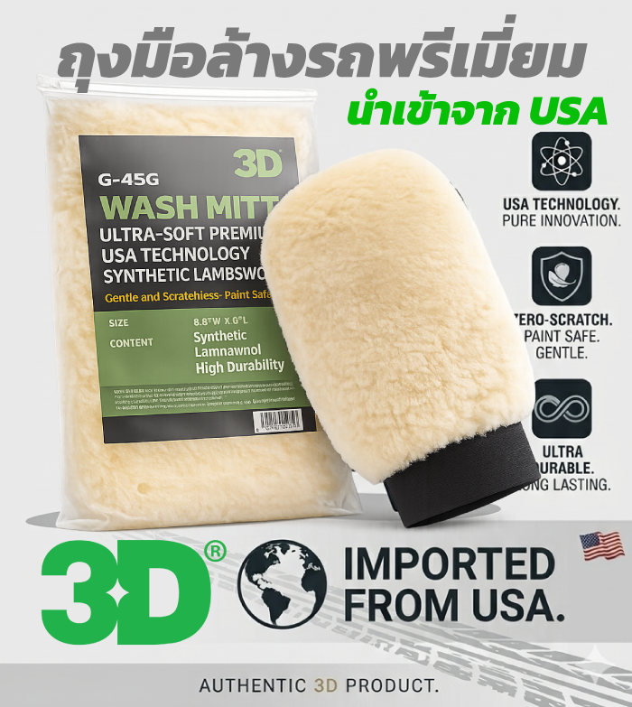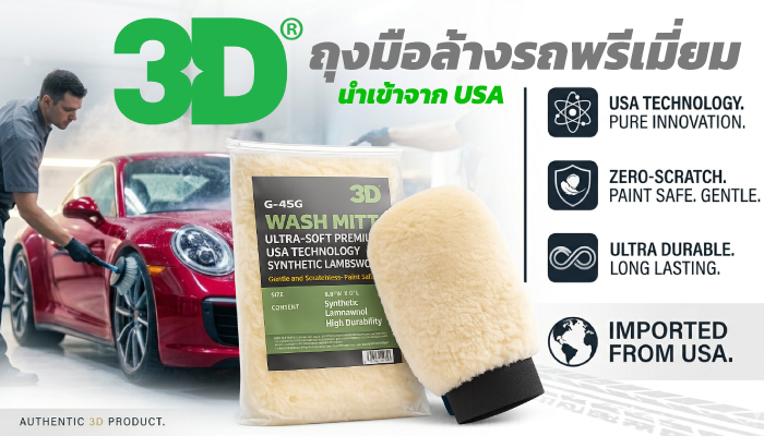 ล้างรถได้อย่างสะดวกสบาย ไม่เกิดรอยขนแมว ด้วยถุงมือล้างรถขนแกะแท้จาก 3D สินค้าคุณภาพจากแบรนด์ 3D ประเทศสหรัฐอเมริกา