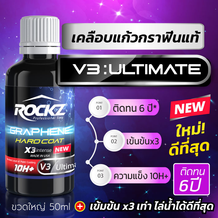 เคลือบแก้วกราฟีน ROCKZ Graphene 10H มี 2 รุ่นให้เลือก V3 Basic,V2 Pro และใหม่ล่าสุด V3 Ultimate (เข้มข้นขึ้น 3 เท่า)