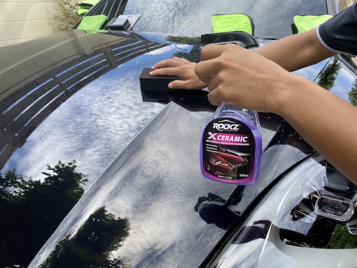 - ลูบดินน้ำมันไปบนสีรถที่สะอาด แนะนำใช้ร่วมกับสเปรย์ ROCKZ X หรือไม่มีให้ใช้น้ำเปล่า