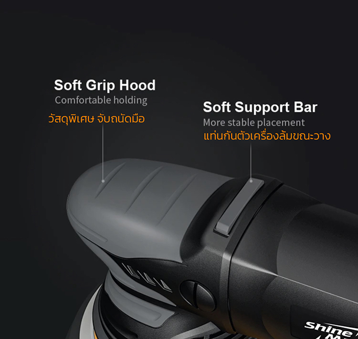 เครื่องขัดสีรถ Shine Mate รุ่น EX620 น้ำหนักเบา ทนทาน เป็นเทคโนโลยีใหม่มีระบบ CNC Component ขัดสบาย ไม่สั่นสะท้านมือ ด้ามจับผลิตจากวัสดุพิเศษนุ่มมือพร้อมกันลื่น มีอัจฉริยะภายในควบคุมการทำงานที่ Overload