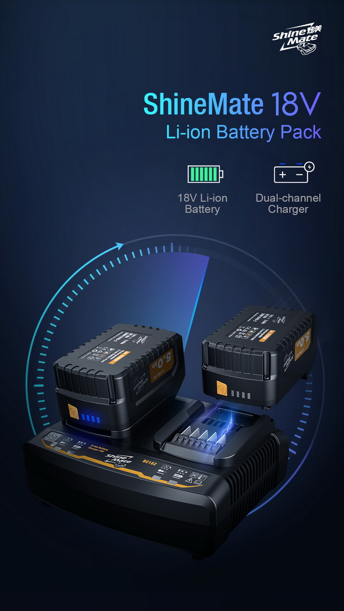 วีดีโอ แนะนำแบตเตอรี่ลิเธียมความจุสูง 5.0ah 18V และแท่นชาร์จแบบคู่ชาร์จไวเพียง 1 ชั่วโมง